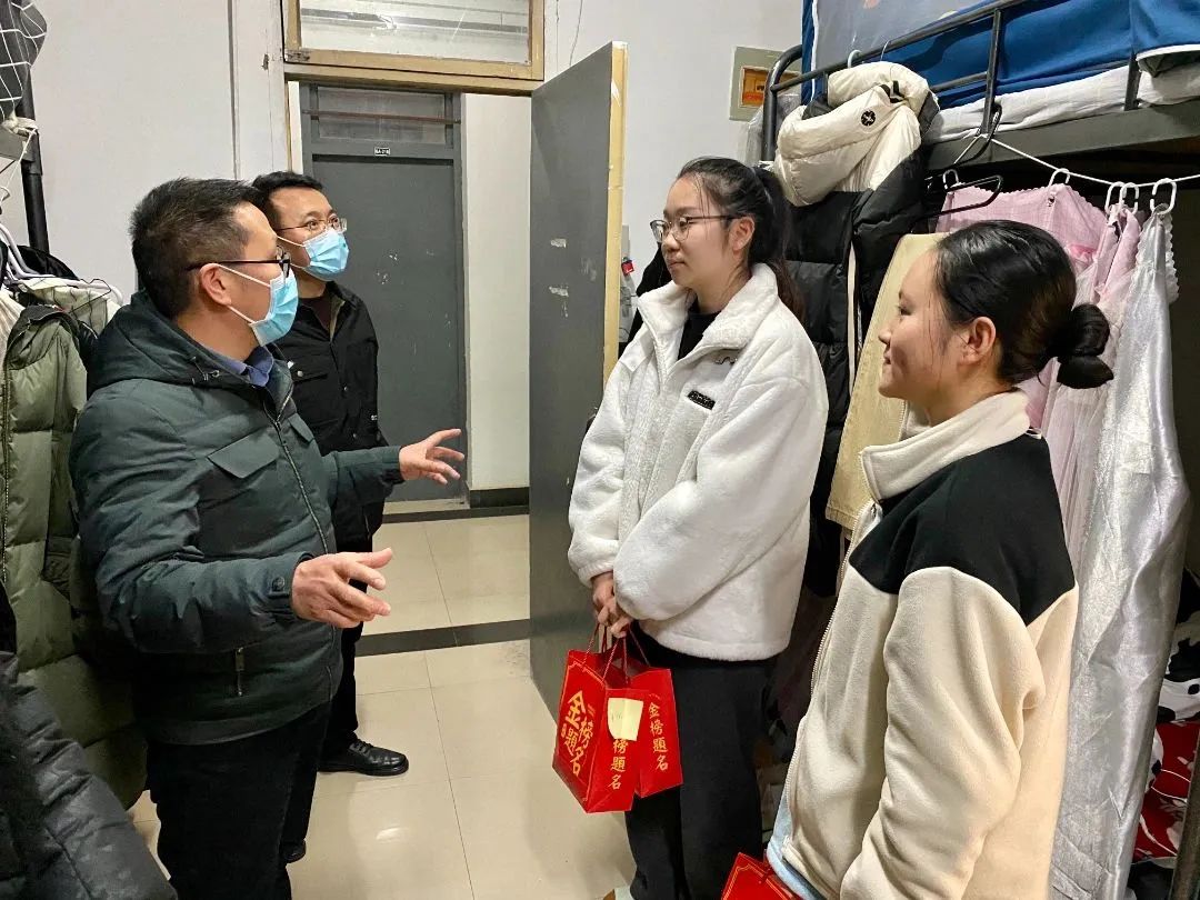 心之所向,素履以往,2024年全国硕士研究生招生考试将至,凛冬挡不住学子们奋斗的信念。为鼓励考研学子信心,表达学院关怀,舒缓备考压力,12月13日-14日,学院党委书记单升军、党委副书记马文静、辅导员高洋、王瑞芬一行深入图书馆和学生宿舍楼开展2024届考研学生慰问活动,并发放考研礼包,为考研学生送去温暖和关怀。