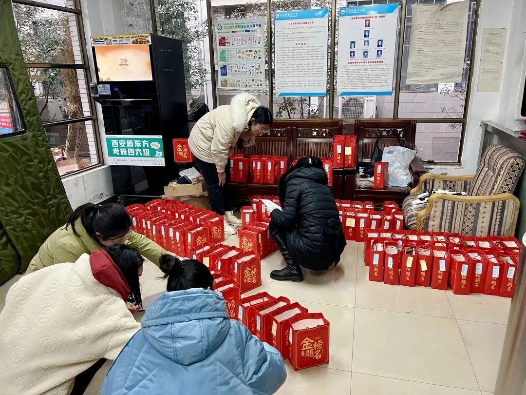 走访慰问过程中,学院领导老师一行与备考学生亲切交流,鼓励考生们坚定信心,全力以赴;宽慰他们放平心态,享受过程;叮嘱他们做好防护,调整节奏,以最好的身心状态迎接即将到来的考试。学院还为考生们精心准备了包含中性笔、巧克力、橙子、暖宝宝、定制可乐、医用防护口罩、金榜题名卡等在内的考研加油礼包,每份礼包都寓意德“福”美满、集聚能量、守护健康,一战“橙”硕,表达学院对考生的关心、支持和祝福。