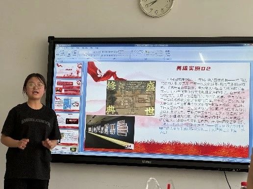 2023级4班团支书兼“星·梦”理论研习社成员秦佳乐同学以《文化创新》为题,以北京冬奥会、中国文学盛典鲁迅文学奖之夜、中国国家博物馆历代绘画大系“成果展”、《逃出大英博物馆》等例论证了文化创新的重要性,她强调文化软实力是一个国家综合国力的重要组成部分,并号召同学们增强本民族文化自信,激发文化活力,推动中华文化繁荣发展。