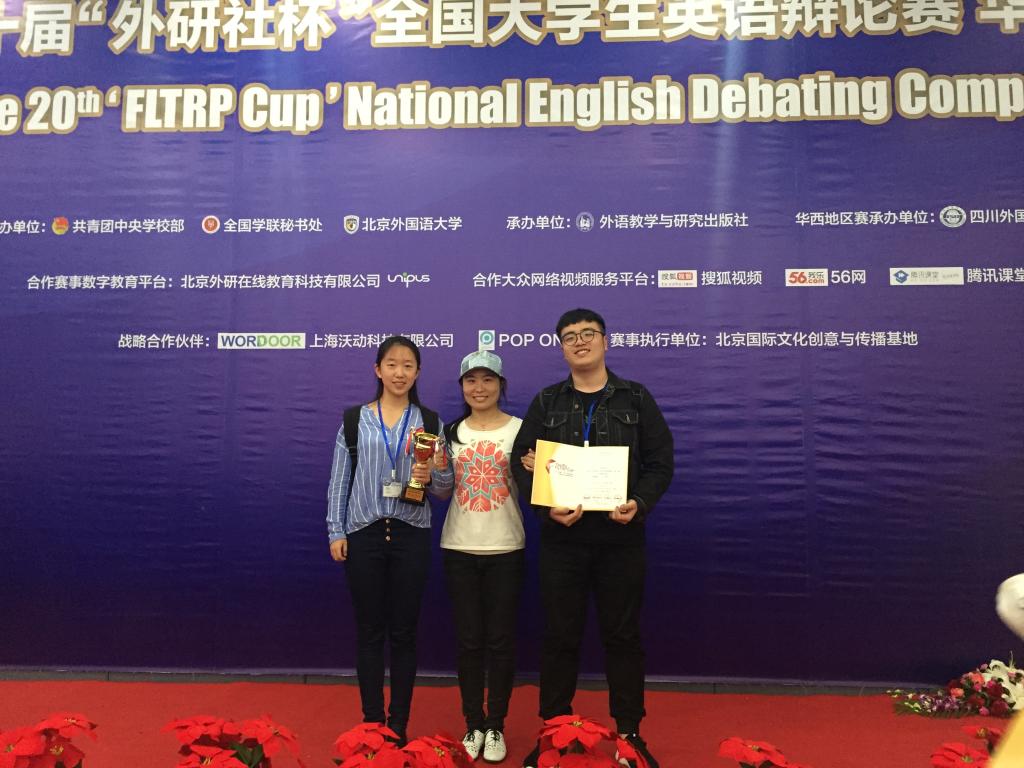 优秀教师王博佳老师带队和悉心指导。经过5轮循环赛,赵雅杰凭借扎实的语言功底和出色的思辨能力,一路过关斩将,从众多参赛队伍中脱颖而出晋级全国总决赛并获得华西赛区“最佳辩手”称号。