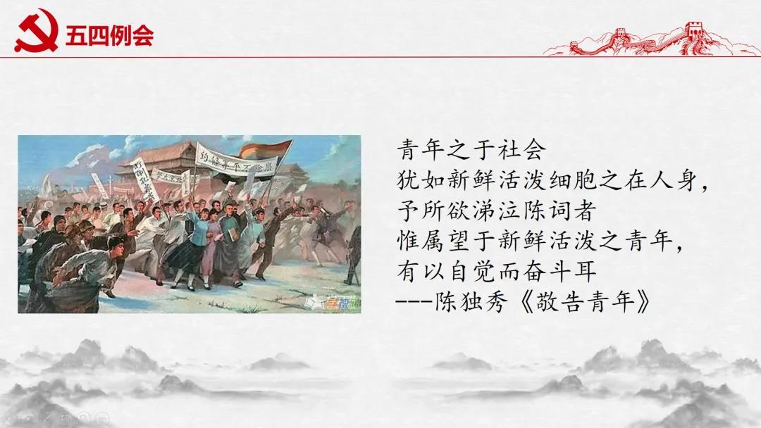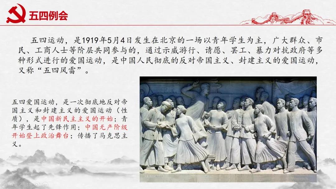 喜看稻菽千重浪,遍地英雄下夕烟。接着,牟子龙同学带领各位社员回眸历史,指出1919年5月4日学生能够作为先锋者站出来,正是因为青年人散发着独有的朝气;也正是因为五四运动的发生,才使得中国无产阶级登上了历史舞台,中国开启了新民主主义革命的脚步。