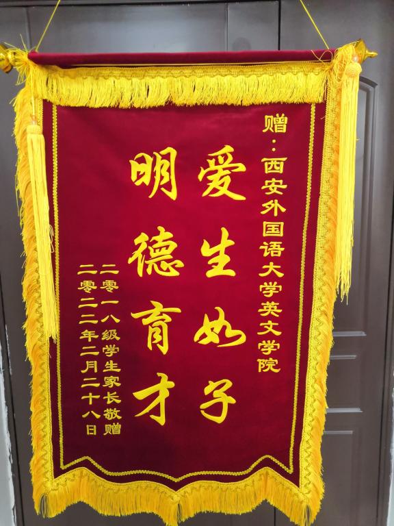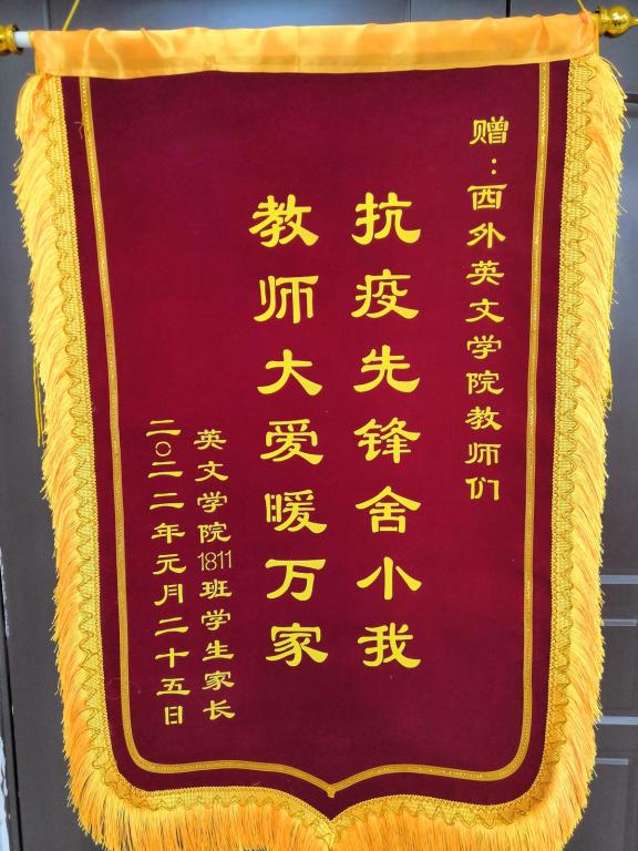 学生家长先后自发寄来内容为“抗疫先锋舍小我教师大爱暖万家”和“爱生如子明德育才”的锦旗,并附感谢信,向学院以及在抗疫期间为学生的平安健康保驾护航的教职员工表达感激之情。