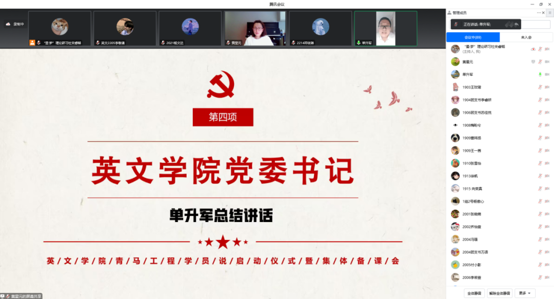 “宣传贯彻党的二十大,青马学员说”青马工程学院学习宣传贯彻党的二十大精神活动的通知》,并宣布英文学员“宣传贯彻党的二十大,青马学员说”青马宣讲团正式启动。