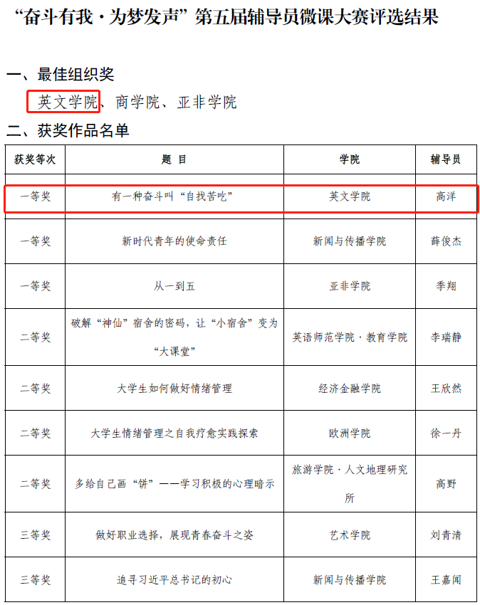 一贯重视辅导员队伍建设,通过组织辅导员参加“辅导员素质能力展示活动”、“微课大赛”、“团干部素质能力大赛”等活动不断提升辅导员理论水平和专业素养,以赛促学、以赛促干,加强辅导员专业化、职业化建设,提高工作的创新性,有效提升工作质量。