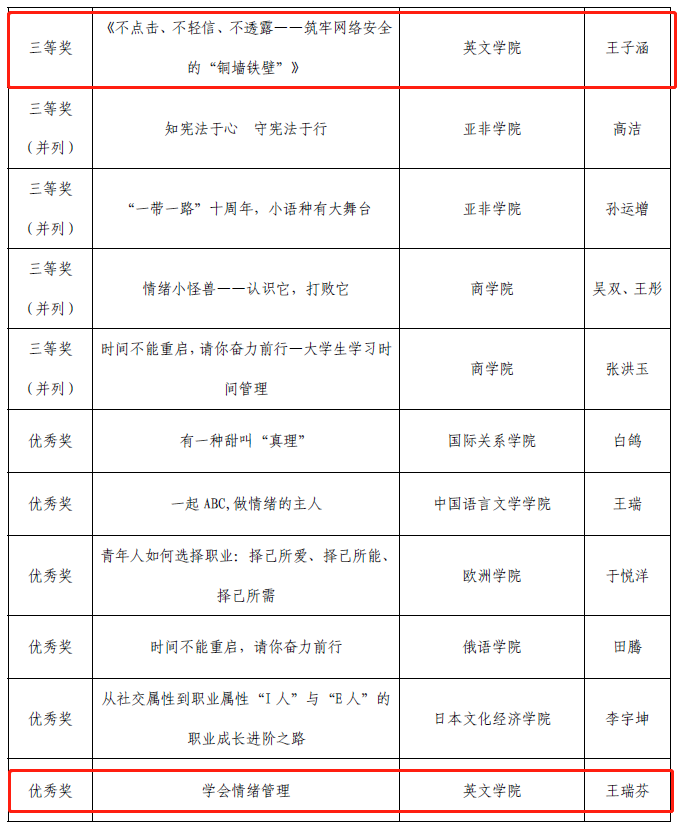 高洋老师获得一等奖和“最受欢迎作品奖”,王子涵老师获得三等奖,王瑞芬老师、黄星元老师获得优秀奖,刘喆老师获得“最受欢迎作品奖”,香香漫画