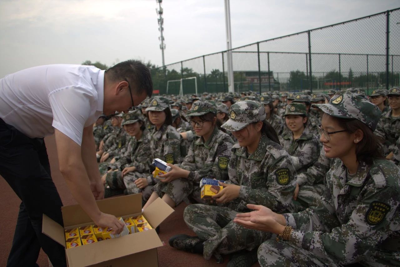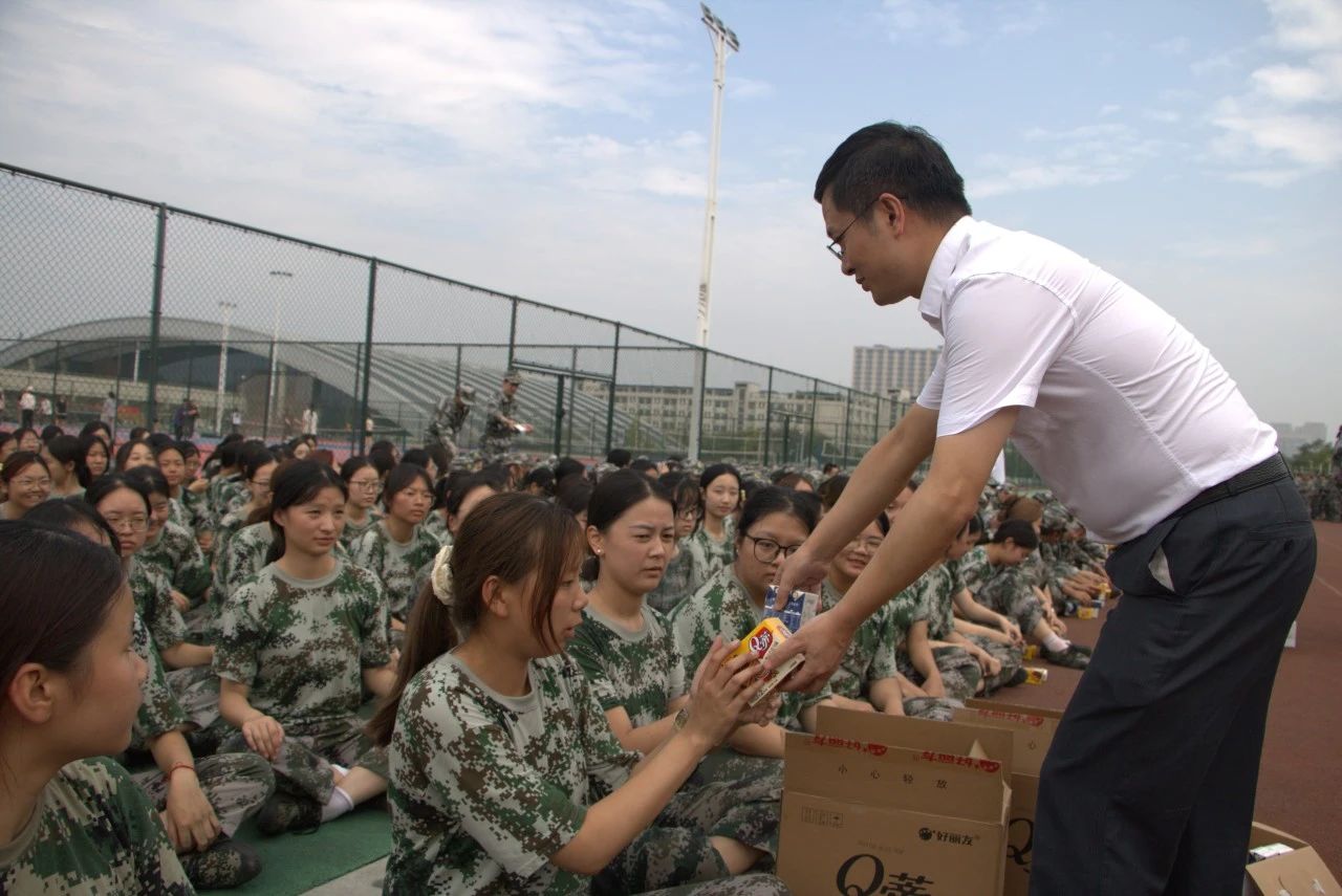 慰问期间,领导老师们为军训新生发放了慰问品,并与他们进行了亲切交谈,了解他们的军训感悟和实际需求。他们的关怀如同夏日军训场上的一缕清风,拂去了连日来的疲惫,带来了清凉与振奋,激发了同学们更强的训练热情。