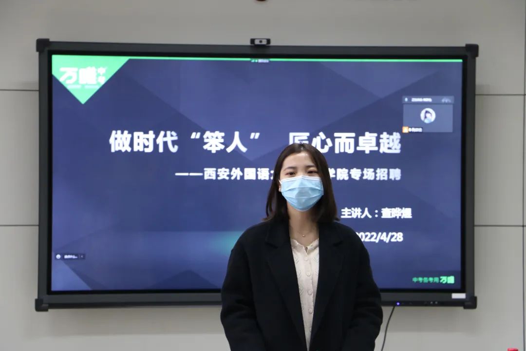 主动对接用人单位,通过现场招聘和腾讯会议线上线下相结合的方式,于4月28日上午举办了2022年春季学期第二场毕业生专场招聘会。万唯中考、明珠国际集团、北京万德友联科技有限公司等三家用人单位进行了企业宣讲,毕业班全体辅导员及50余名2022届毕业生参加,宣讲会由辅导员王子涵主持。
