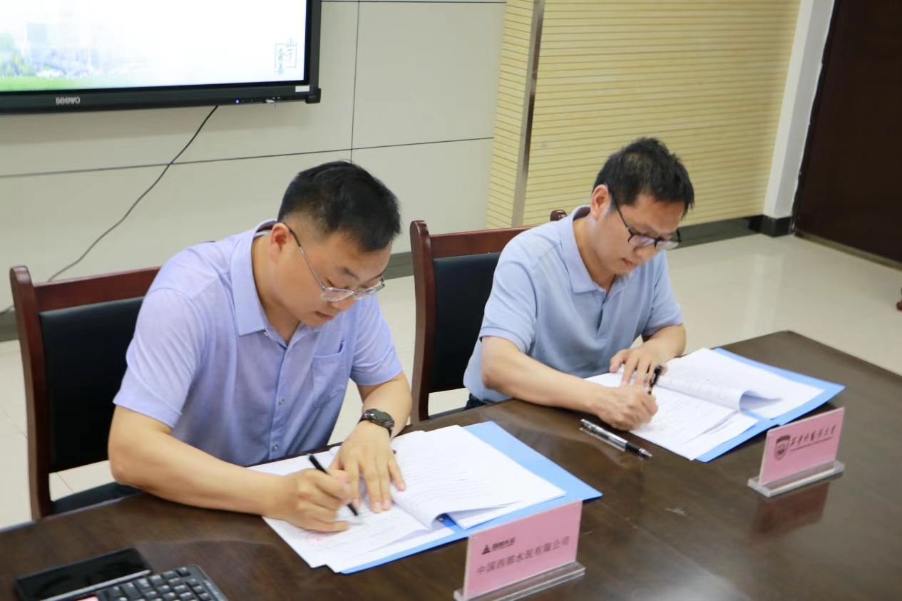 与中国西部水泥有限公司人力资源部总经理许林舟签署校企合作协议和基地共建协议。雷茜代表学院与中国西部水泥有限公司人力资源部副总经理张明娟互相颁授学生实习就业基地和校企共建人才培养基地牌匾。雷茜代表学院向UKEC英国教育中心西安公司颁授学生实习就业基地牌匾。学院领导和老师还向来宾赠送了学院文创纪念品。