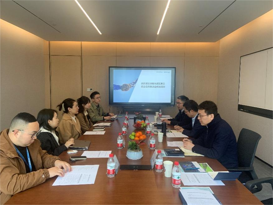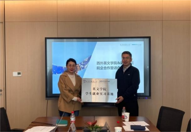 马文静表达了对公司的感谢,介绍了访企拓岗任务、学校学院基本情况以及学院人才培养、教学科研、社会服务、毕业生就业等,表示期待校企双方在学生就业实习、生涯规划、人才培养等方面加强合作。徐斌认为,此次调研活动有助于学院查找在学科专业设置、人才培养、就业服务等方面存在的不足,从而进一步提高英文学院人才培养质量等。双方举行了学生就业实习基地授牌仪式。座谈会后,学院访企拓岗工作组一行参观了企业园区和办公环境。
