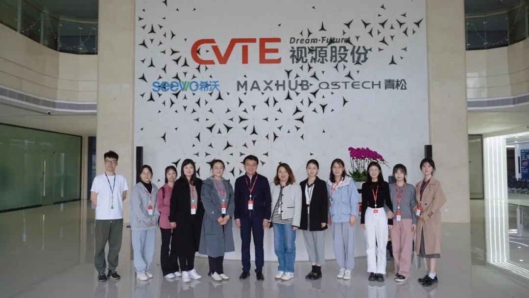 随后,CVTE在公司会议室组织了校企座谈。公司大区总监王静文、大区经理兼校友许乃夫、人力资源部经理张聿晖参加。张聿晖对CVTE的历史沿革、香香漫画、所获成绩等进行了详细的介绍,帮助学生更加充分全面地了解CVTE的同时,助力同学们了解社会、认识企业,认清前景、发展自我。王静文对学院师生表示热烈欢迎,对我校已入职学生给予较高评价,并针对学生专业特点给予海外销售方面的建议,让同学们对自己想要加入的行业更早进行了解,及时转换身份,以便快速融入工作岗位。校友许乃夫鼓励学生提高专业能力的同时,积极参与社会实践,提高综合能力,适应社会需求。