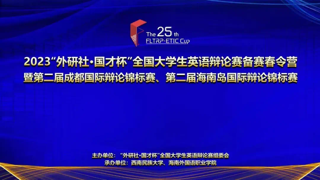 2023年五一假期,“外研社·国才杯”全国大学生英语辩论赛组委会将携手西南民族大学与海南外国语职业学院共同开展2023“外研社·国才杯”全国大学生英语辩论赛备赛春令营暨第二届成都国际辩论锦标赛、第二届海南岛国际辩论锦标赛,通过培训与比赛结合的形式,帮助辩手们在培训中提升辩论技巧,在比赛中深化对培训内容的理解。