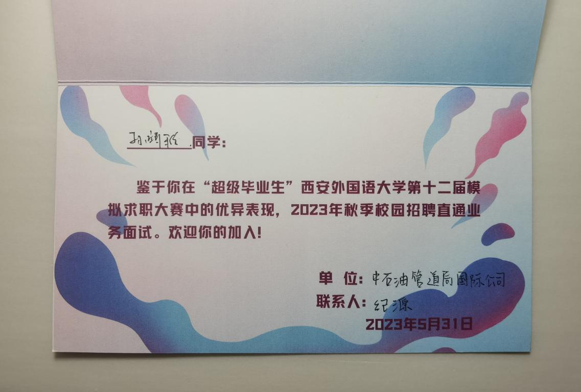 决赛中,孙靖雅通过我型我秀、自我介绍、选手返选三个环节结合自身特长分别从个人成长、求职意向及实践经历等方面充分展现了个人风采,获得多位企业HR评委老师的认可。经过激烈角逐,孙靖雅荣获本次比赛二等奖,并获得了中国石油管道局国际公司和新东方西安学校两张优先录用卡。香香漫画