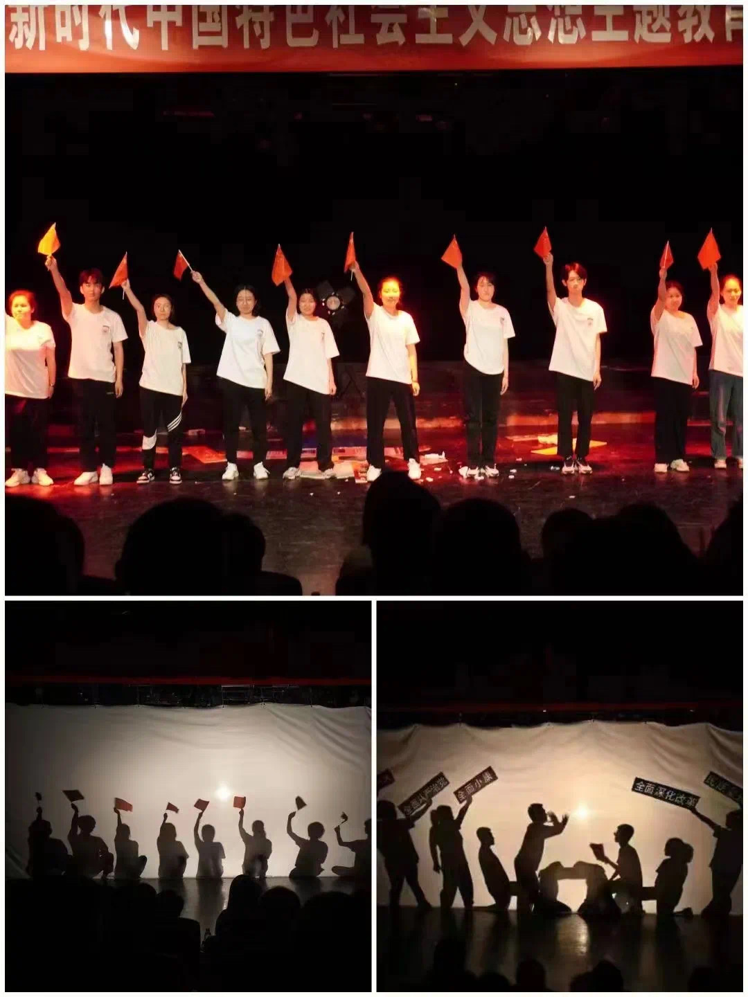 星·梦理论研习社同学们经过深入思考、几易其稿,最终确定以《奋起百年路,启航新征程》为主题作为红色经典文艺作品。通过全体演出人员长达几个月的刻苦练习、精心排练、反复雕琢,最终在舞台中央呈现出一幅气势磅礴的百年奋斗史篇。从百年屈辱到光辉建党,从民族屹立到改革开放,从走进新时代到再启新征程,一幕幕光影的交替,一声声铿锵的呐喊,一代代青年的觉醒,展现出不同历史时期的中国青年坚定信念、团结奋斗、砥砺前行、担当作为的昂扬风采,使台下观众产生了强烈共鸣,带领大家沉浸式体验了一堂生动的大思政课。