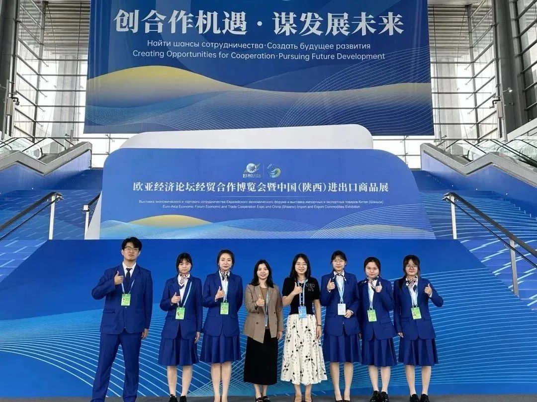 带队教师王子涵率领五十名志愿者投身欧亚经济论坛配套博览会,通过前期专题授课、岗前服务培训、志愿服务期间的行为规范要求,志愿者们充分利用语言专业优势和昂扬向上的状态最终展示出专业、热情和细致的志愿服务水平。