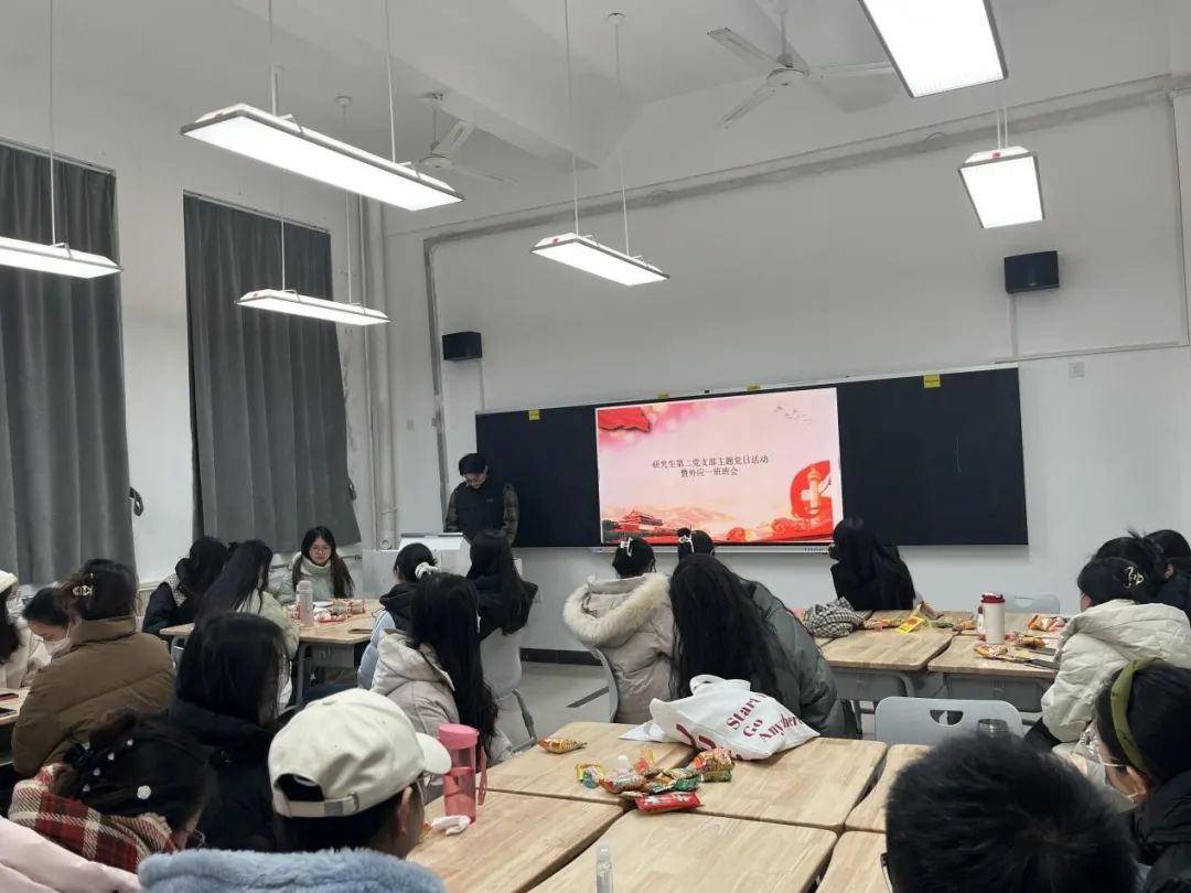 2022级4班团支部党团为标,团结一心。在校、院领导、老师的正确指导下,在班团委成员的带领下,本支部全体成员在思想上都积极进步,班级共有共青团员23人,青年5人。为此,2204团支部对自己有严格的标准。思想政治教育上,班级现有11名积极分子组成的学习组。我们结合专业特色,整理时政双语词汇,进行班级微信群每日分享。同时,我们借助班级同学在理论研习社的资源优势,协助班委完成每月团日活动主题教育,带动同学们共同学习党的理论知识,用青年青语传播理论。本年度我们先后完成“4+1”任务,按照“思想旗帜”"坚强核心“”强国复兴“”挺膺担当“等4个主题,分别开展1次专题理论学习。我们积极参与学习二十大理论等党团学习讲座,不断向党组织靠拢。在这一年,本支部每期青年大学习完成率达 100%,同学们的爱国意识高涨,本支部在逐渐树立一个有文化、有深度、有内涵的团支部形象。