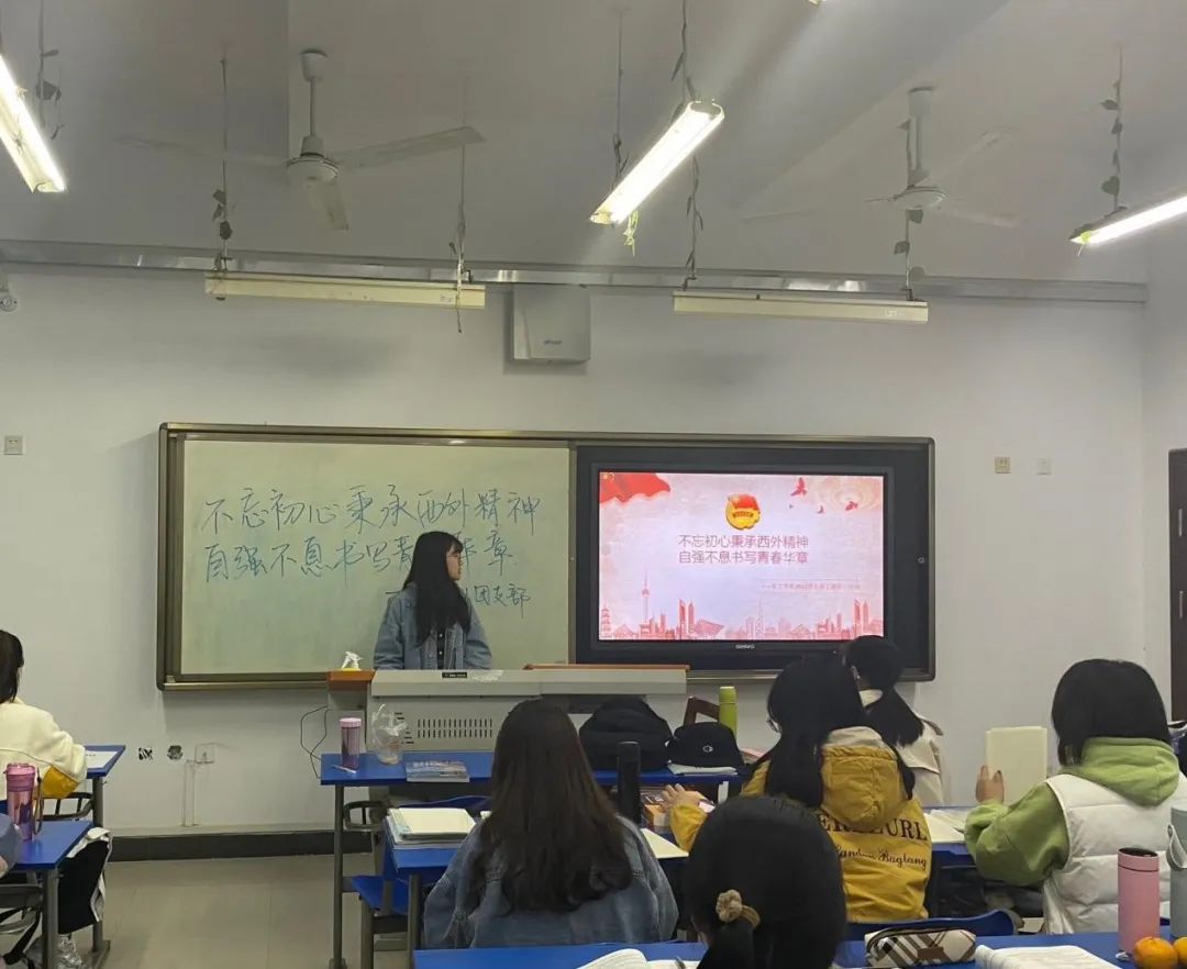 思想学习上,班级总体成绩名列前茅,支部5名团员获得“国家励志奖学金”、4名团员获得“三好学生暨二等奖学金”等荣誉,团支部先后召开“青春献礼二十大,砥砺奋进新征程”、“请党放心,强国有我”等系列主题团日活动。实践活动中,支部团员纷纷投身“三下乡”暑期社会实践等活动,多名成员参与十四运志愿服务、丝绸之路国际博览会、陕西考古博物馆、迎接新生、校运会等志愿活动,在活动中展示个人风采,彰显西外精神。