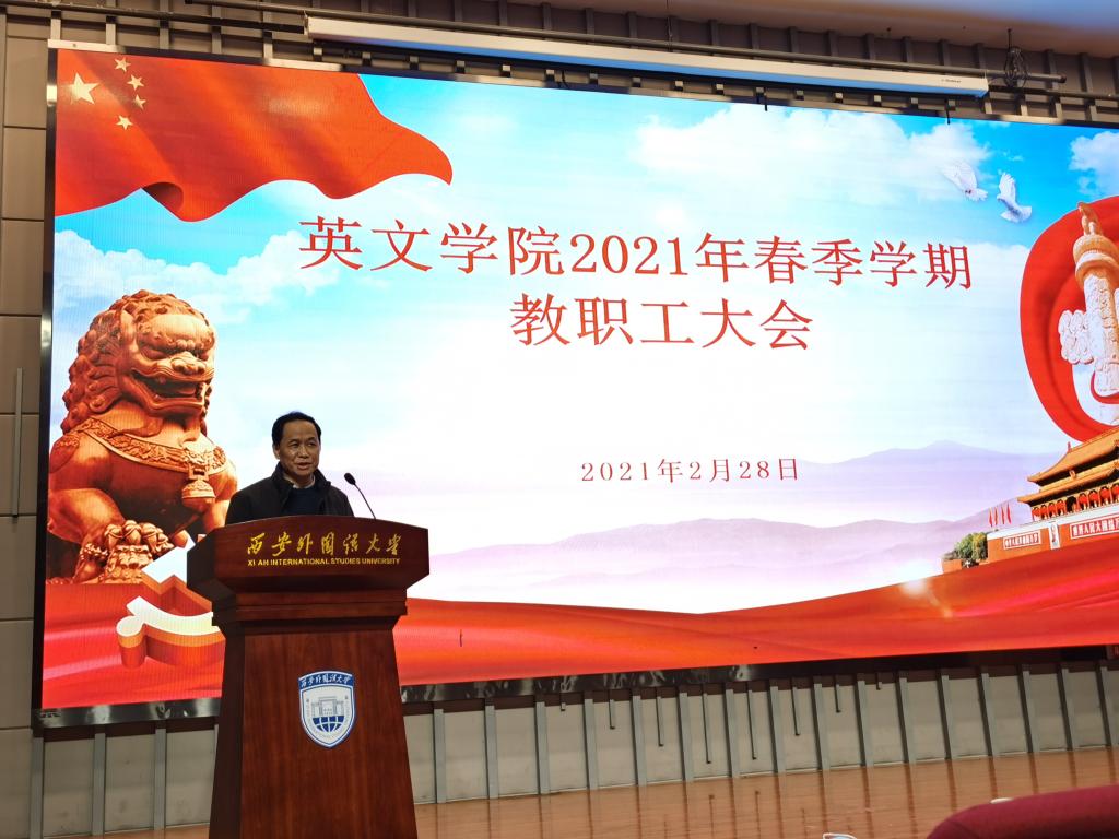 在长安校区教学楼A111会议室召开2021年春季学期第一次教职工大会。会议由党委书记单升军主持,140余名教职工参加会议。