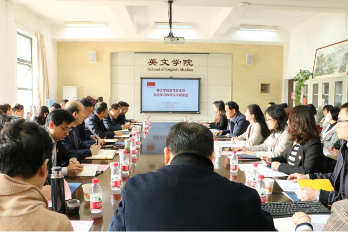 与学校党史学习教育领导小组办公室在长安校区教学楼G209会议室共同召开了教师党支部党史学习教育现场观摩会。校党委书记白黎,党委副书记王天平,党委副书记、纪委书记、监察专员王强,学校党史学习教育领导小组成员,全校教师党支部书记代表以及学院基础英语党支部全体党员参加了观摩会。会议由我院党委书记单升军主持。