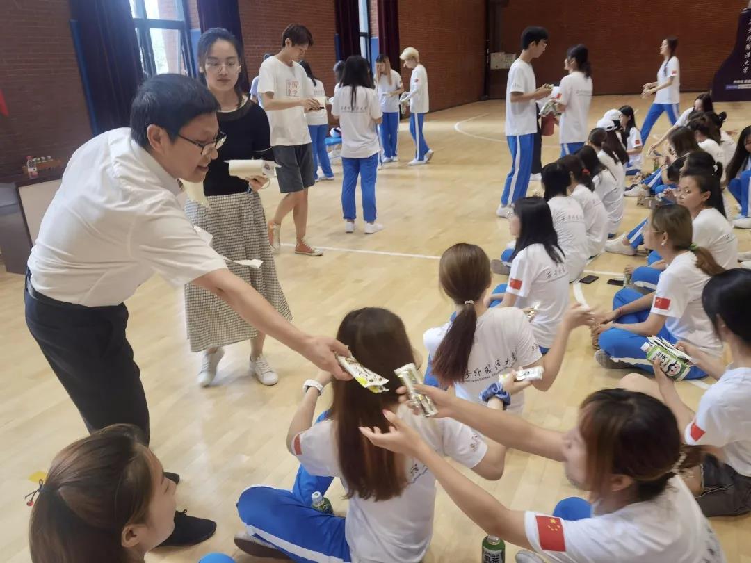 活动之前,学院为同学们精心挑选了他们喜爱的食品饮料,为他们加油鼓劲。标兵代表李悦、张逸敏、吉祥物代表毛春泽先后发言,他们和同学们共同回忆排练中的场景,分享排练过程中辛苦付出的点点滴滴,表示虽然付出很多,但是收获更多,十四运会的训练给自己的大学生活增添了一份独有的、终生难忘的经历,这是他们人生经历的一笔财富,同时也锻炼了他们的意志。虽然天气炎热,训练很辛苦,但是同学们互相加油打气,表示一定会感谢此时奋斗的自己,更加坚定了为全运奉献的决心。