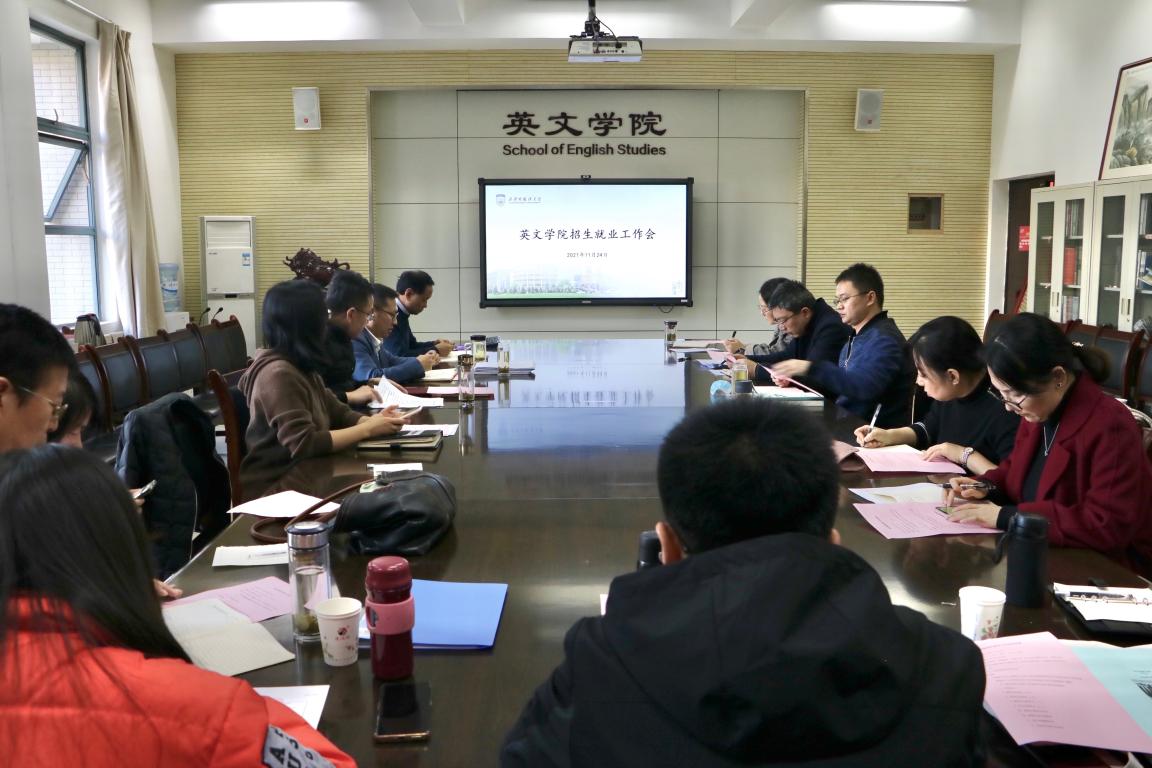 院长南健翀在讲话中指出,建立招生、人才培养和就业工作联动机制很有必要。一是鼓励学生在学好英语专业的同时,充分利用学校微专业、双学位等资源,根据兴趣爱好选修相关课程,提高专业附加值和综合竞争力;二是在人才培养环节,要不断思考如何进一步凝练专业特色;三是要加强对学生实践能力的培养;四是要将就业指导工作前移,开展常态化、针对性的指导,帮助学生树立正确的就业观;五是要帮助学生理性地分析自身优劣以及考研、就业形势,制定合理的预期目标。