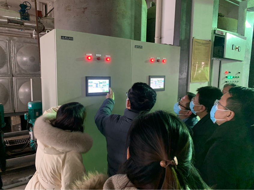 座谈会前,张涛带领师生一行参观了学校供水系统,了解学校供水水源、水质基本情况,参观了热力中心,并在现场工作人员的指导下,了解了供暖系统的运行情况。