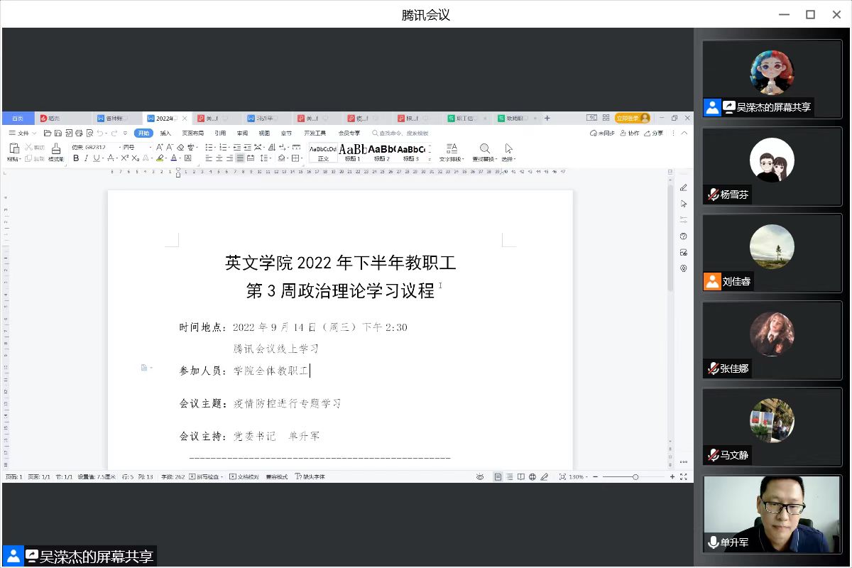通过腾讯会议召开本学期第3周政治理论学习会,就疫情防控工作进行传达、学习、部署,学院全体教职工参加,会议由党委书记单升军主持。