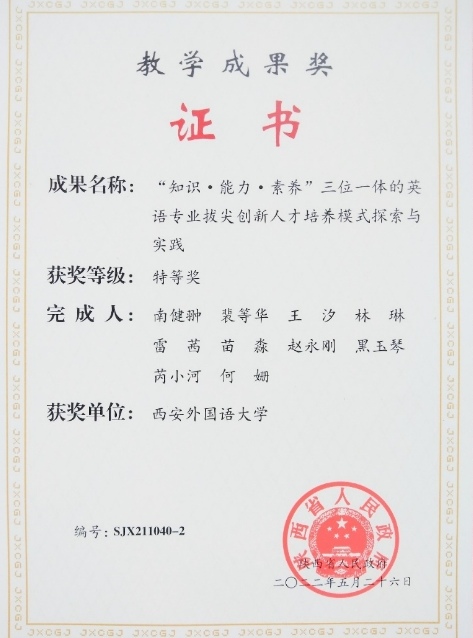 2022年,我们克服疫情,圆满完成教育教学任务,在师资优化、教学改革、信息化课程建设和教材建设方面喜获丰收。苗淼老师荣获第十二届“外教社杯”全国高校外语教学大赛全国总决赛个人二等奖,其团队荣获教学设计类二等奖,林琳博士和韩林烨老师在学校第四届课堂教学创新大赛中分获二、三等奖。南健翀教授主持成果荣获省级教学优秀成果奖特等奖,“高级英语写作”、“英语学术论文写作”、“语言学导论”等4门课程入选国家高等教育智慧教育平台课程,2个虚拟教研室获批学校第二批虚拟教研室;获批教育部产学合作协同育人项目2项,校级教改项目5项;2部教材获校级优秀教材一等奖,黑玉琴教授和郭粉绒副教授主编的《英语学术论文写作》拟获省级优秀教材二等奖(已公示)。深化大学英语教学改革,制定大英教学综改方案,建立大学英语分级教学体系,设置基础班、提高班和发展班。制定非英专硕士研究生公共英语课程模块设计方案,开设英语口语与演讲、学术英语等6模块8门课程。2022年引进高层次人才2人,晋升二级教授1人。推荐20名教师参加职称评审。