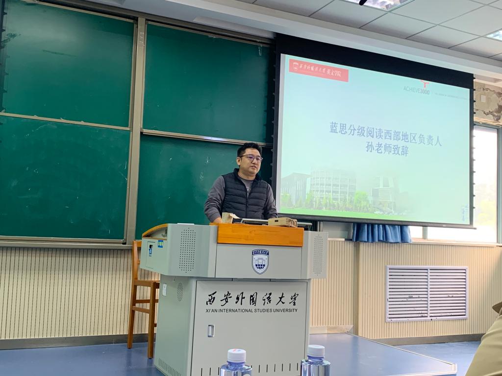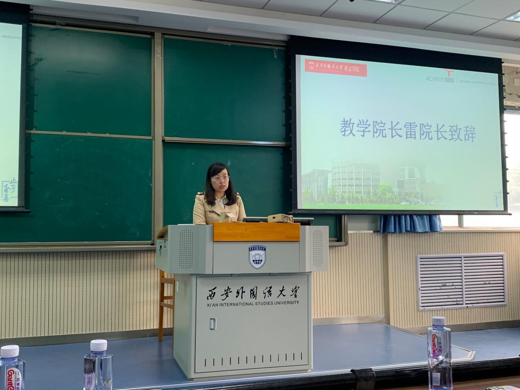 首先,雷茜副院长致欢迎辞。雷院长向西安蓝思开源信息科技有限公司表示感谢,蓝思为学生提供了分级阅读以及个性化服务,为学生语言水平的提升搭建平台。雷院长指出,蓝思阅读的覆盖面有望继续扩大,让更多学生能够利用这个平台,希望各位同学能够读更多书,充分利用蓝思平台,读适合自己的书,走适合自己的路。