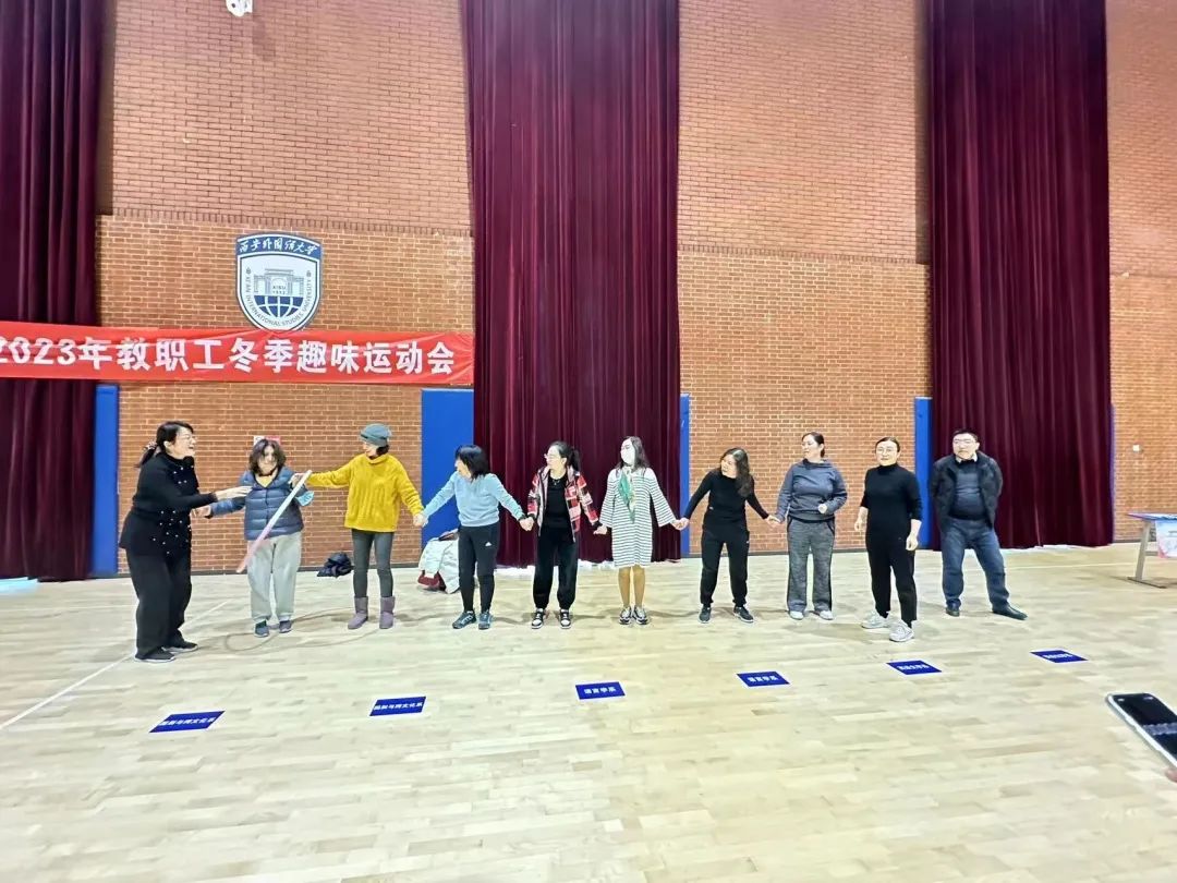 团委学生会协办的2023年教职工冬季趣味运动会在校文体馆举行,70余名教职工参加。