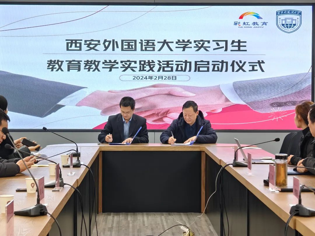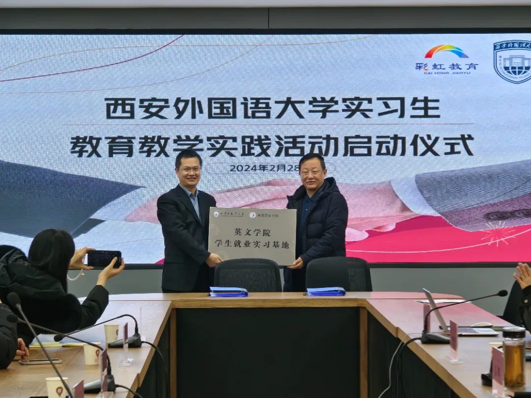 实习生李秋韵作为实习生代表发言,感谢学校领导和老师们的热情接待,让实习生们感受到了家的温暖。深知咸阳彩虹中学的辉煌成绩和良好声誉,能够在这里实习感到无比兴奋和荣幸。并表态:尊重老师,认真对待学生,发扬止于至善的学院精神,团结合作,脚踏实地,提升素养。