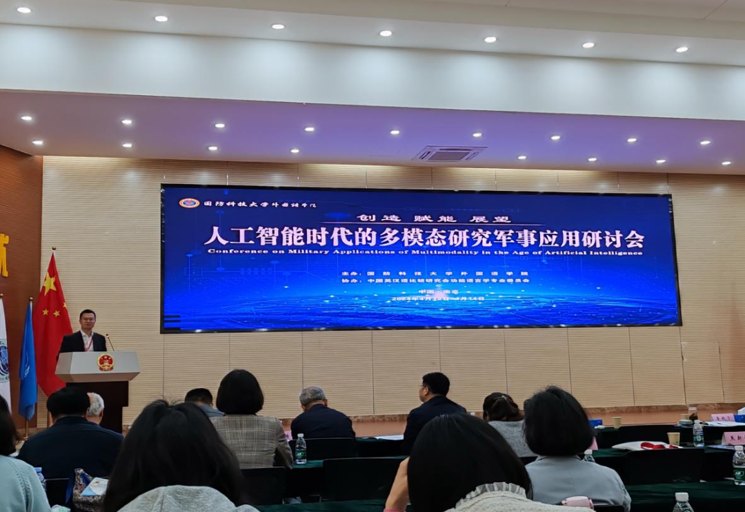 2024年4月13日,院长张凌教授应邀到国防科技大学外国语学院参加人工智能时代的多模态研究军事应用研讨会。研讨会由国防科技大学外国语学院主办,中国英汉语比较研究会功能语言学专业委员会协办。受组委会委托,张凌院长主持第四分论坛多模态与技术赋能,做了题为《论多模态的体认概称性及其军事应用初探》的汇报交流,并在闭幕式上总结小组发言。