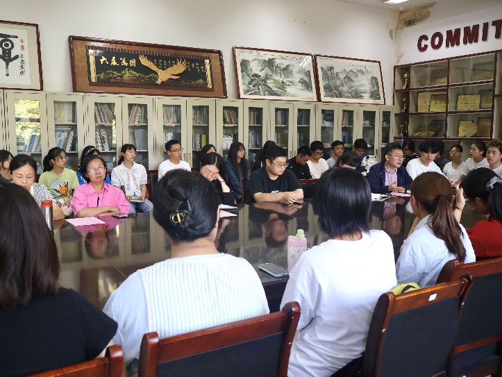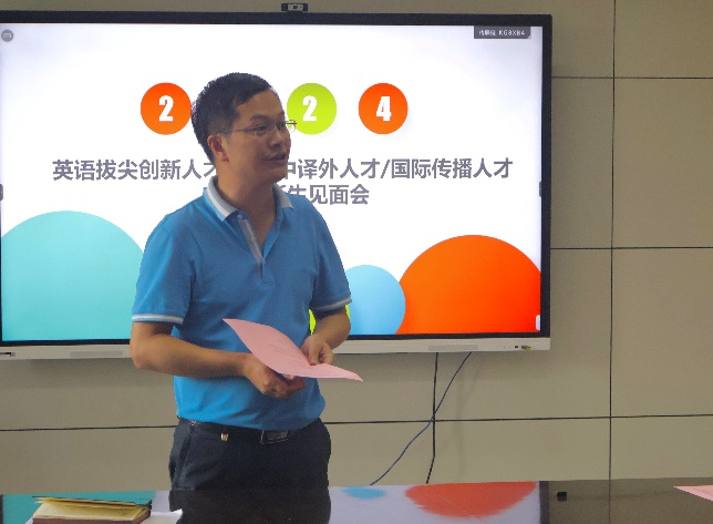 在教学楼G209会议室举行拔尖创新人才实验班、卓越中译外人才实验班、英语(国际传播)人才实验班师生座谈会,学院院长张凌、党委书记单升军、教师代表王巍、龙湛,班主任贺琳、卓越创新学院教学秘书郭向涛、教学秘书殷希及全体实验班学生参与本次会议。会议由副院长雷茜主持。