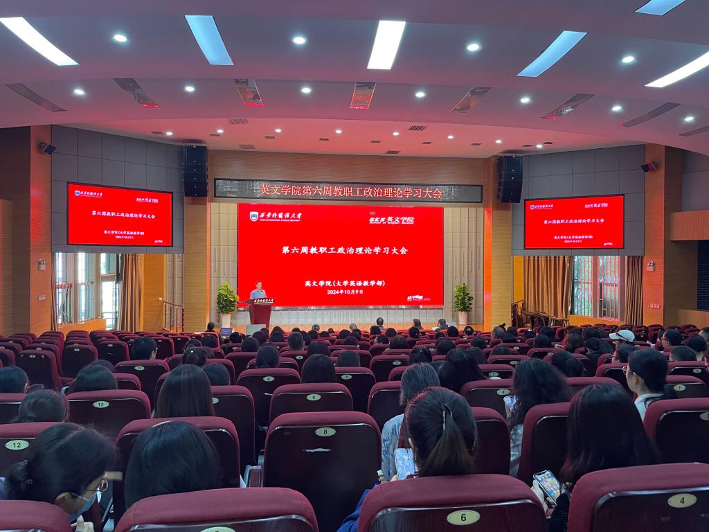 在长安校区教学楼A区111报告厅召开第六周政治理论学习会,专题学习习近平总书记近期重要讲话精神。会议由党委书记单升军主持,全体教职工参加。
