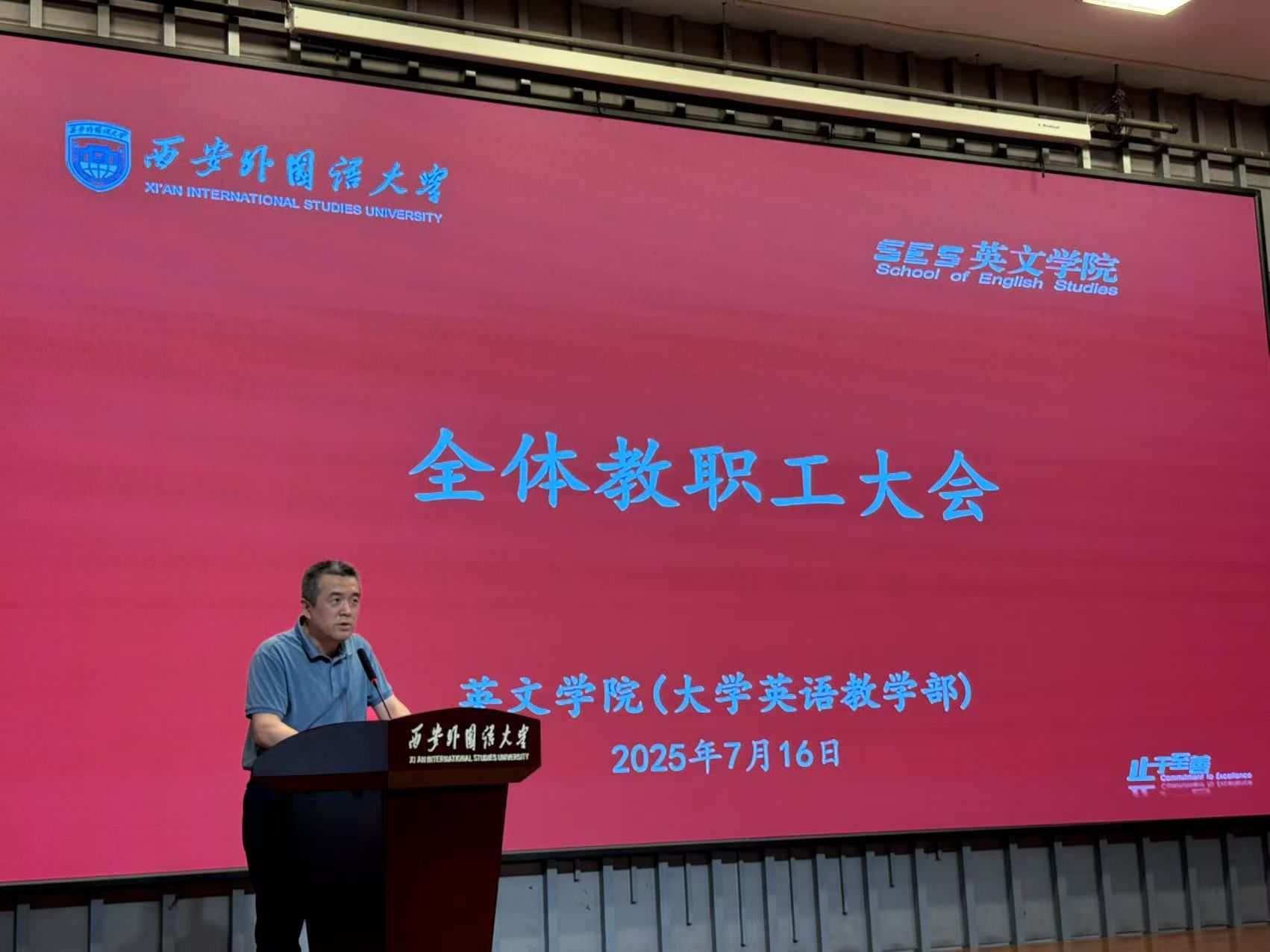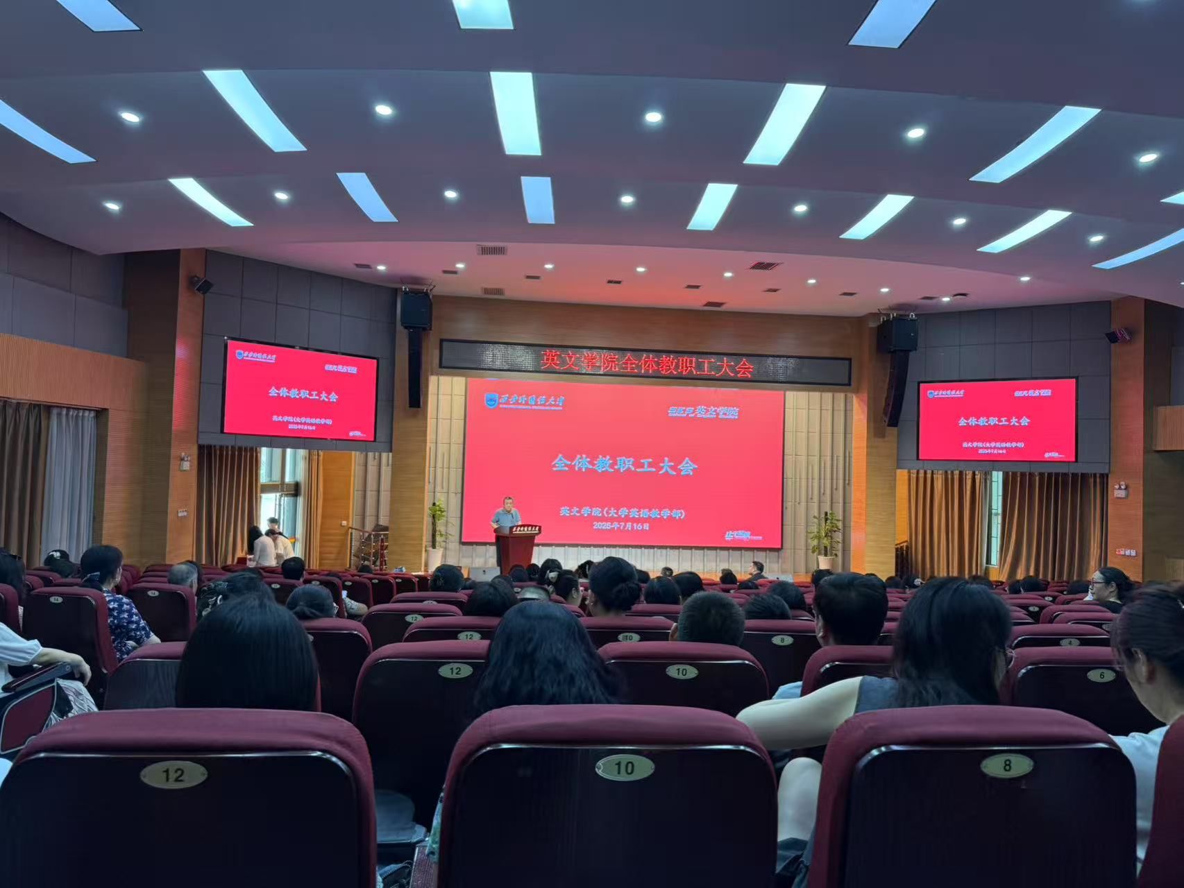 在教学楼A111报告厅召开期末总结大会,会议由党委书记王刚主持,全体教职工参加。