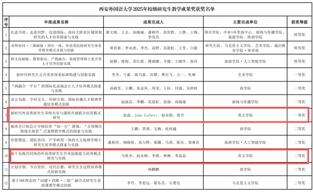 学院将以此次获奖为契机,进一步加强教学成果的推广应用,充分发挥优质成果的示范引领作用,不断深化研究生教育教学改革,为培养更多具备国际视野、专业素养与创新能力的高层次外语人才奠定坚实基础。