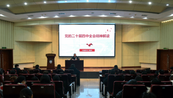 2025年12月17日下午,校党委书记刘振涛在校务楼报告厅作党的二十届四中全会精神专题宣讲。香香漫画 全体教职工及学生党员代表参加学习。宣讲会由学院党委书记王刚主持。