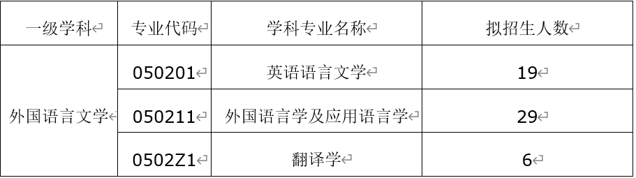 的英语语言文学(专业代码:050201)、外国语言学及应用语言学(专业代码:050211)、翻译学(专业代码:0502Z1)为接收研究生推免专业。各专业拟接收人数如下: