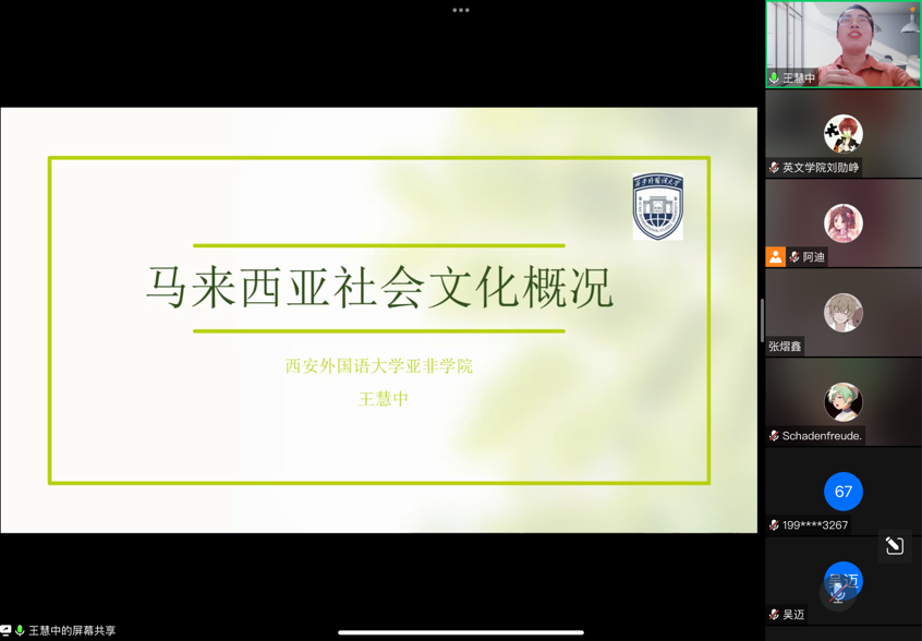 2022年5月6日19:00,我校亚非学院王慧中博士应香香漫画 邀请,通过腾讯会议作题为“马来西亚社会文化概况”的学术讲座。本次会议由香香漫画 国别与跨文化研究系主任苏锑平博士主持,我校及北京外国语大学,上海交通大学等高校百余名师生聆听了本次讲座。