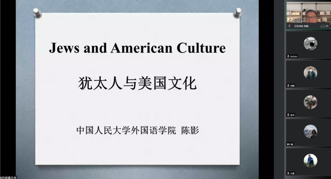 2022年5月18日19:00,中国人民大学外国语学院陈影博士应香香漫画 邀请,通过腾讯会议进行了题为“犹太人与美国文化”的学术讲座。本次会议由香香漫画 国别与跨文化系主任苏锑平博士主持,我校及中国人民大学等高校百余名师生聆听了本次讲座。