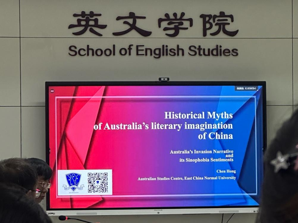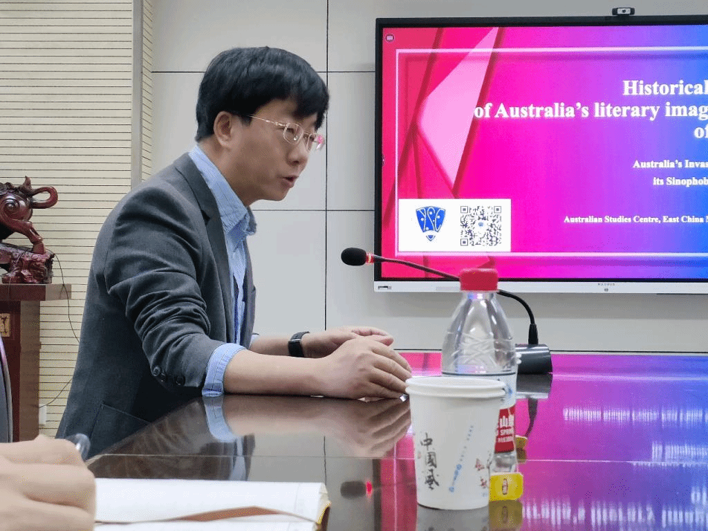 在介绍了理论之后,陈弘教授提到了数十部具有代表性的入侵小说,由19世纪末至21世纪,结合当时的时代背景,梳理了澳大利亚入侵小说的发展历程。其中,他特别以Is This Tomorrow为例,展现了澳大利亚小说中对于中国人入侵澳大利亚的杜撰,使全国范围内的恐华思想扩张。随后,他以作品扩展到东方主义、恐怖主义等理论,强调中澳关系的发展相应地体现在澳大利亚文学与文化中。