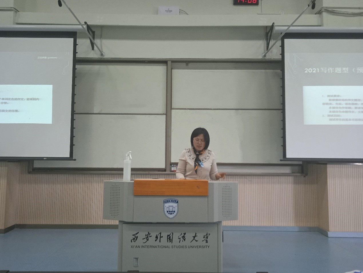 针对学生的复习需求,于5月至6月中旬为两个年级学生分别举办了线上、线下四场专题辅导讲座,在写作、词汇语法、听力和阅读理解四方面为学生答疑解惑。