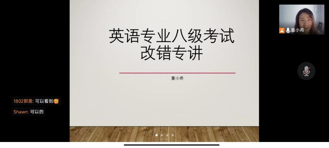 本科2018级学生在英语专业八级考试中取得理想成绩,学院针对学生的复习需求,于2022年5月26日至2022年6月23日举办了8场专八专题辅导讲座,分别从听力、翻译、写作、改错等方面为大家带来一些专八考试“干货”。
