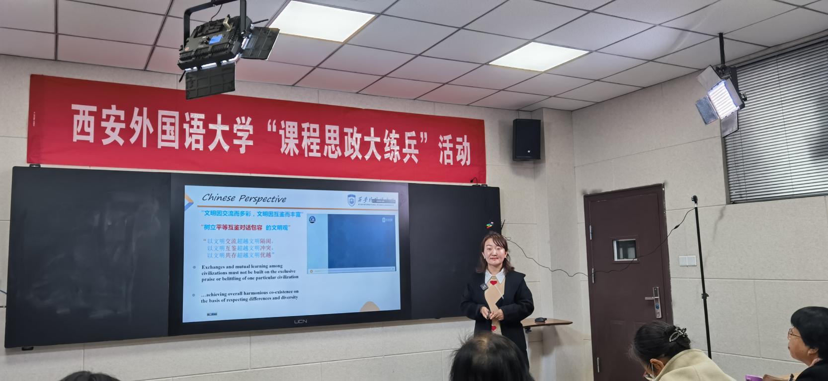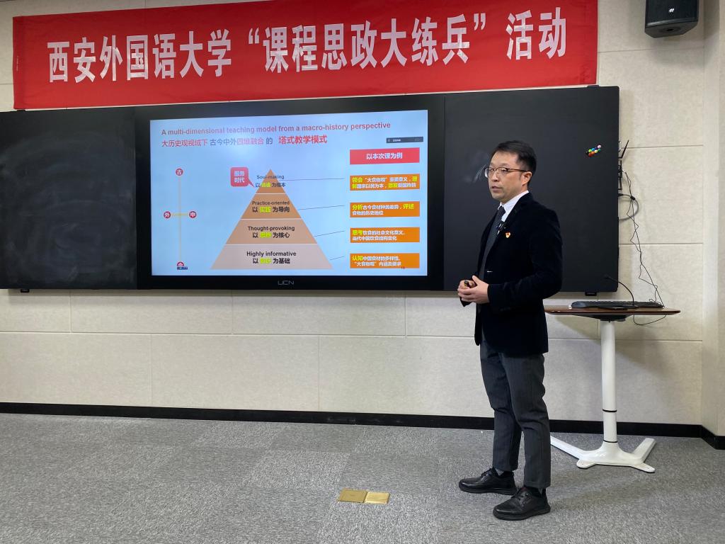 “三进”工作方案》,以“课程思政大练兵”活动为依托,继续为教师提供帮助,促进教师在教授专业知识的同时,深入发掘英语专业课程和教学方式中蕴含的思想政治教育元素,课程教学中融入思政内容,努力实现课程门门讲思政,课课讲育人。