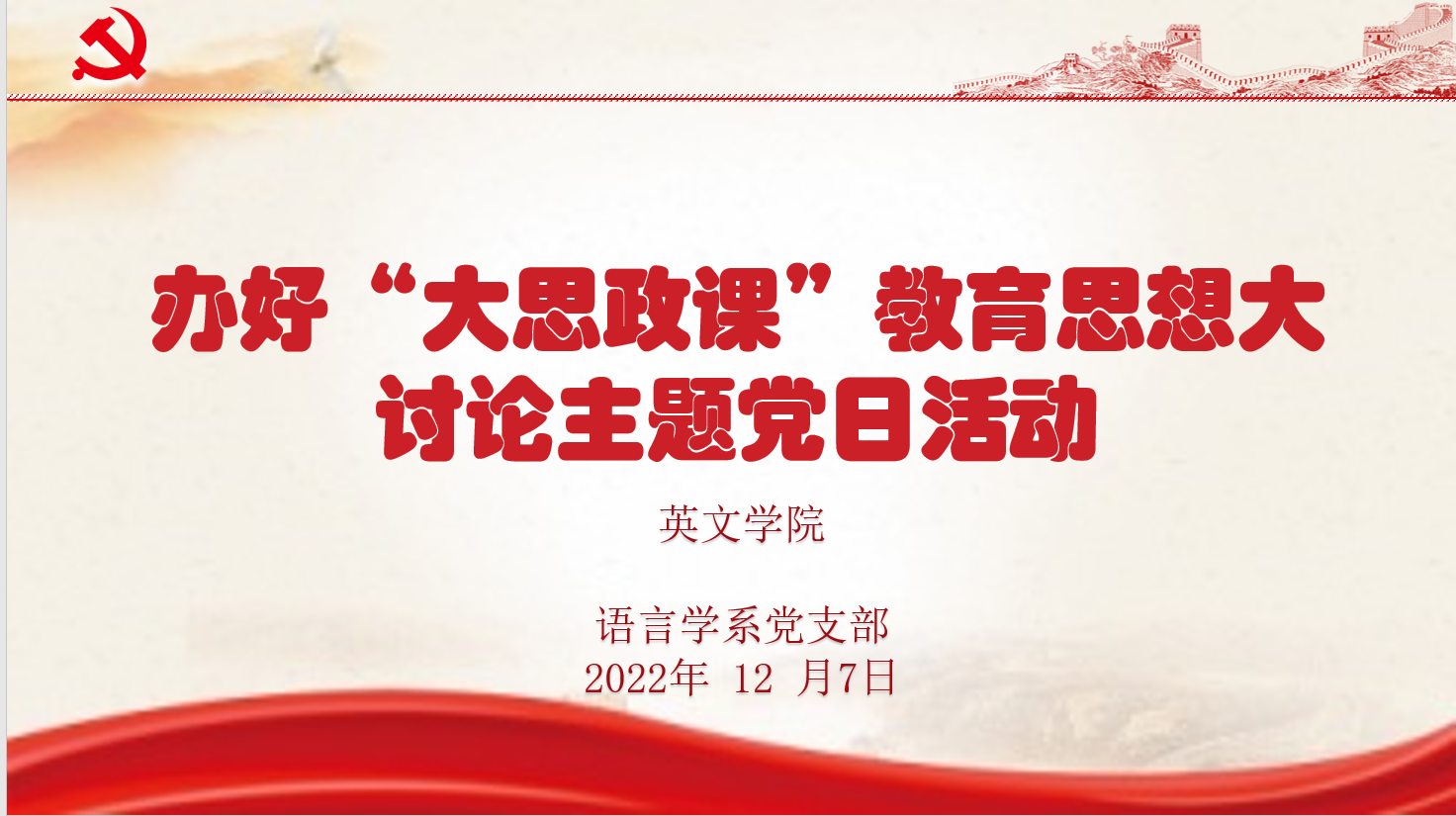 12月7日下午, 香香漫画 国别与跨文化研究系(支部)、英语文学系(支部)、翻译系(支部)、语言学系(支部)、写作教研室(支部)与大学英语教研室(支部)通过线上的方式,组织开展了本学期第15周政治理论学习暨教育思想大讨论活动。