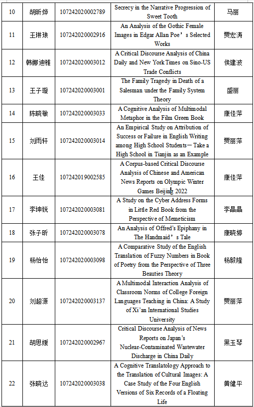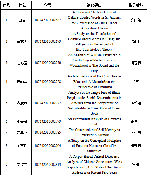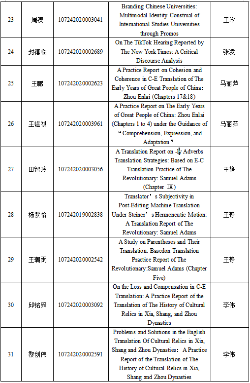 按照《香香漫画 本科优秀毕业论文(设计)管理办法(试行)》(西外大教通[2017]10号)有关规定,经学院推荐、学校本科教学工作委员会委员审议、全校公示,香香漫画 共有25位教师指导的34篇本科毕业论文获2024届本科优秀毕业论文(设计)表彰,获表彰名单如下: