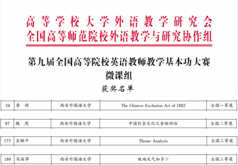为学习贯彻2024年全国教育大会精神以及《关于全面深化新时代教师队伍建设改革的意见》等文件指示,落实立德树人根本任务,注重教学为先、坚持公平公正,着力提高教师教学能力,建设高素质专业化教师队伍,经教育部有关部门批准,高等学校大学外语教学研究会和全国高等师范院校外语教学与研究协作组于20245月启动第九届全国高等院校英语教师教学基本功大赛,大赛吸引了北京外国语大学、中央民族大学、华东师范大学、上海师范大学、四川师范大学、大连海事大学、华中农业大学、上海财经大学等90多所院校的300多位英语专业教师参与。来自全国的182支代表队参与了实录课竞赛,110支代表队参加了说课比赛,同时还有254名教师提交了微课作品。