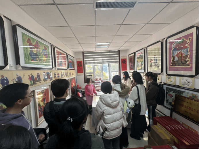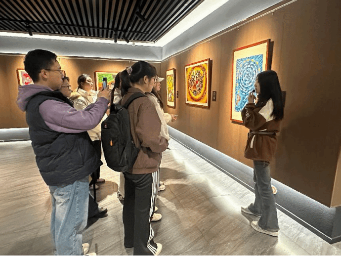 在专业讲解员的引领下,师生步入展厅,沉浸于一幅幅色彩浓郁、构图饱满的农民画之中。这些源自田间地头、农家生活的生动场景,将劳动之美与生活之趣展现得淋漓尽致。