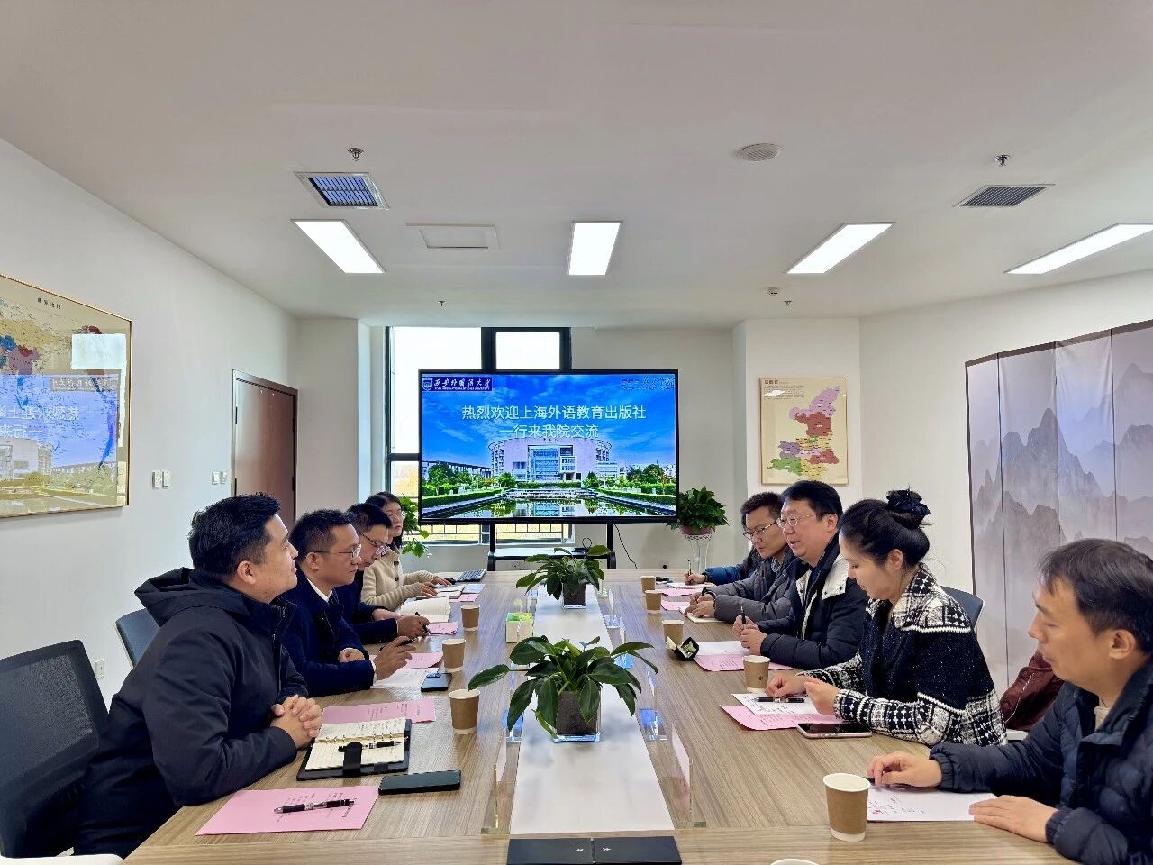双方围绕学术专著与译著出版、数字化教材建设、教师培训、学生实习等合作内容展开深入交流,就出版流程、资源对接、合作机制、新形态教材研发等具体环节进行了细致探讨,进一步明确了合作的方向与路径,希望以此次交流为契机,加强双方常态化联络,深化多维度互动合作,推动资源共享、优势互补,共同为外语教育事业的高质量发展贡献力量。