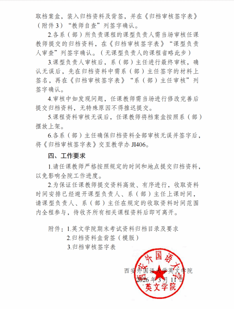为进一步规范教学档案管理,保障教学资料的完整性与规范性,学院印发《关于做好归档工作的通知》,明确归档资料准备标准、分时段提交安排及三级审核流程,理顺“教师自查—课型负责人审查—系(部)主任审核”的归档管理机制。全院七个系(部)按照时间安排,于3月4日-20日有序开展教学档案归档工作,完成了总计535门课、两万余份试卷的整理归档。
