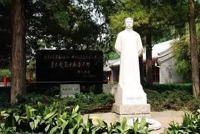 一座通体洁白的汉白玉塑像矗立在万年青、美人蕉的花圃中间。塑像前, 鲜花绽放,香气四溢,好像在向主人表达崇高的敬意和深切的缅怀。